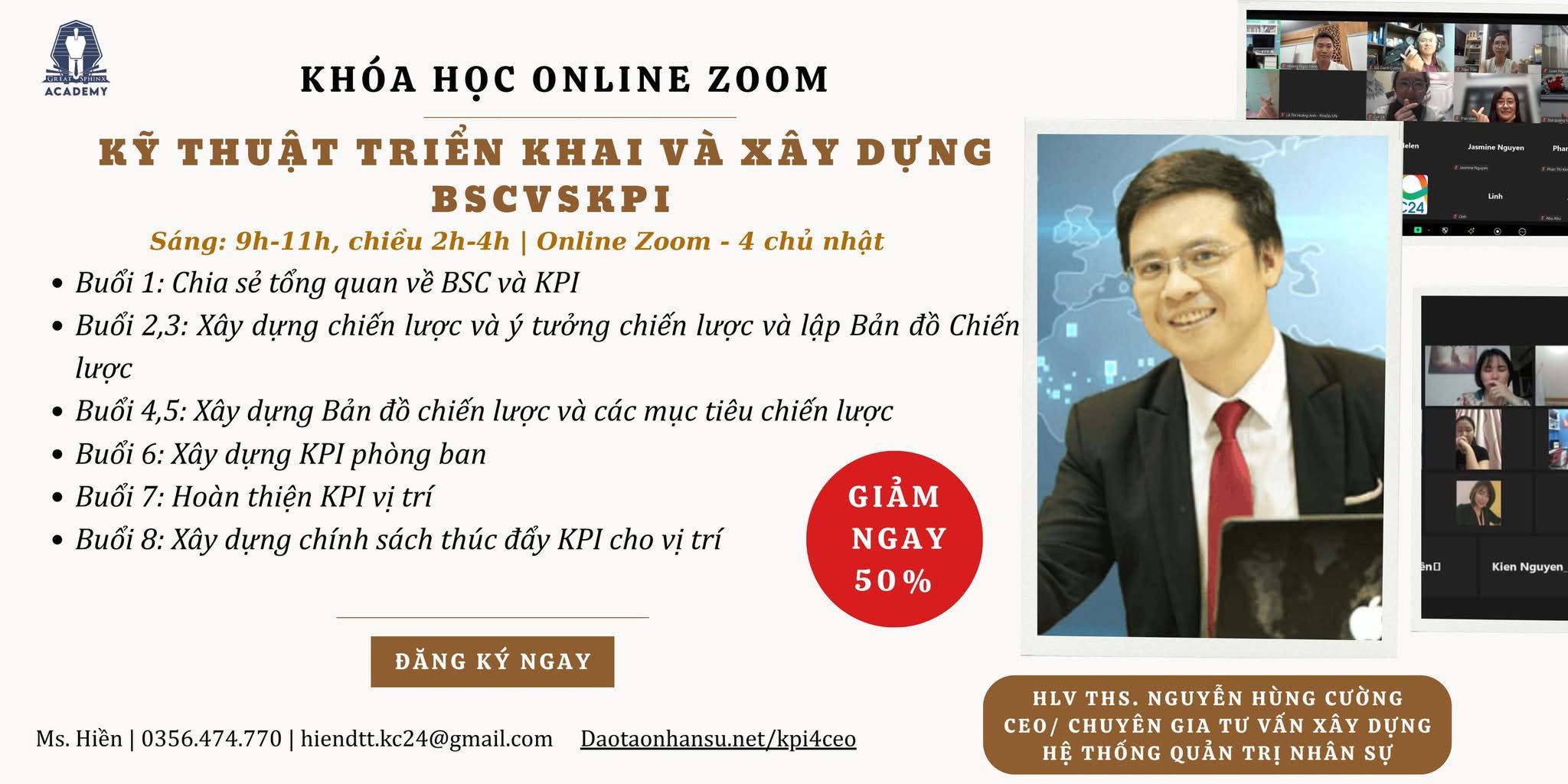 - Thời lượng: 20 buổi online trên phần mềm Zoom
