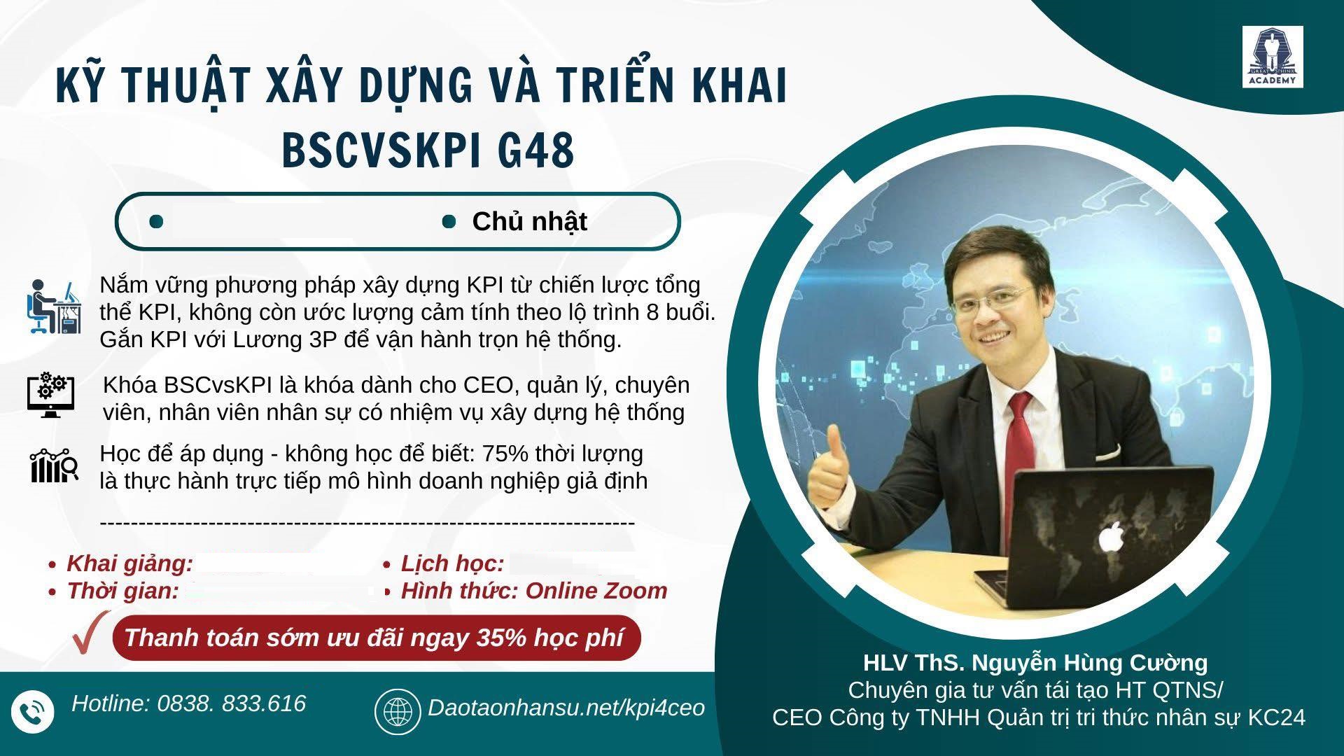 - Khóa học "Kỹ thuật xây dựng hệ thống Quản trị hiệu suất theo BSCvsKPI" (38 lớp): Chia sẻ kinh nghiệm và kiến thức để giúp các công ty xây dựng thành công hệ thống Quản trị hiệu suất theo phương pháp BSCvsKPI (phương pháp độc quyền do tôi tự nghiên cứu ứng dụng)