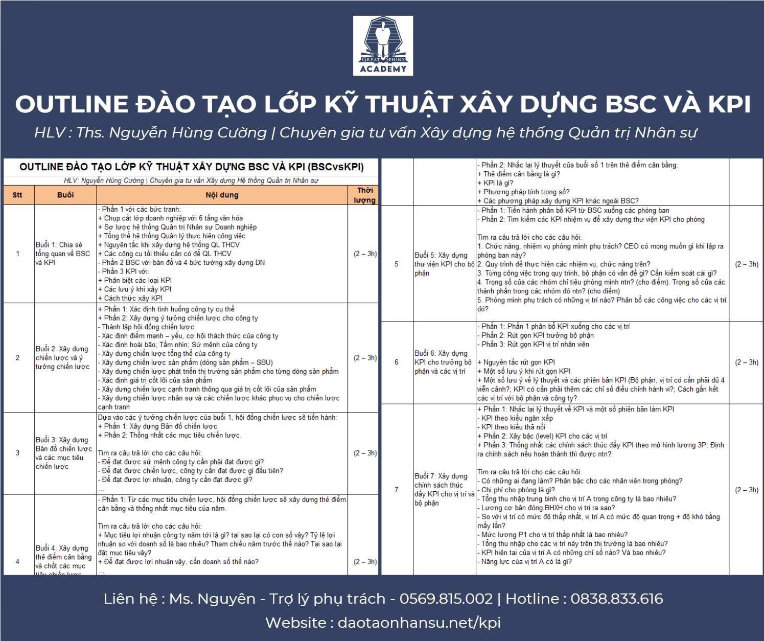 - Buổi 7: Thực hành xây dựng KPI 1 vị trí theo đề nghị học viên trong tình huống