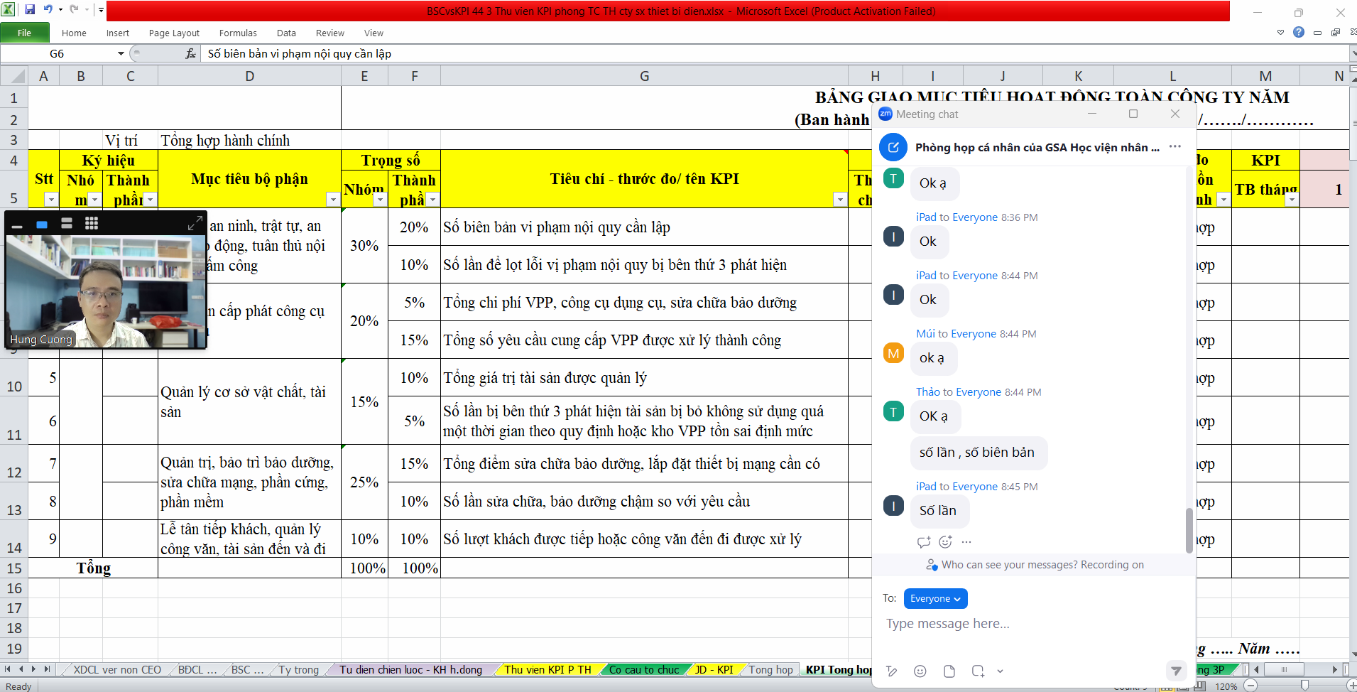 - Buổi 6: Thực hành xây dựng KPI 1 phòng ban theo đề nghị học viên trong tình huống