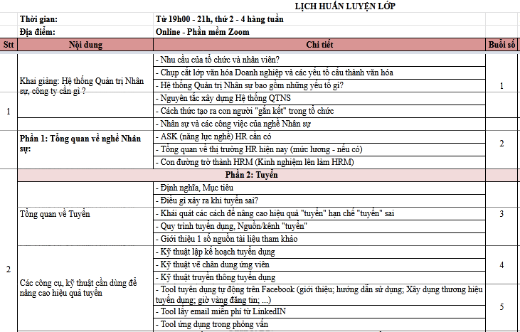 - Dự án Giải mã Nhân sự (27 lớp): Chia sẻ nội dung "Hệ thống Quản trị Nhân sự, nguyên tắc và các xây dựng" và các nội dung khác về quản trị nhân sự.