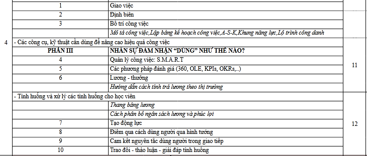 - Khóa hoc "Kỹ thuật xây dựng hệ thống Quản trị nhân sự core - lương 3P (12 lớp): Chia sẻ kinh nghiệm và kiến thức để giúp các công ty xây dựng thành công hệ thống Quản trị nhân sự theo 3P.